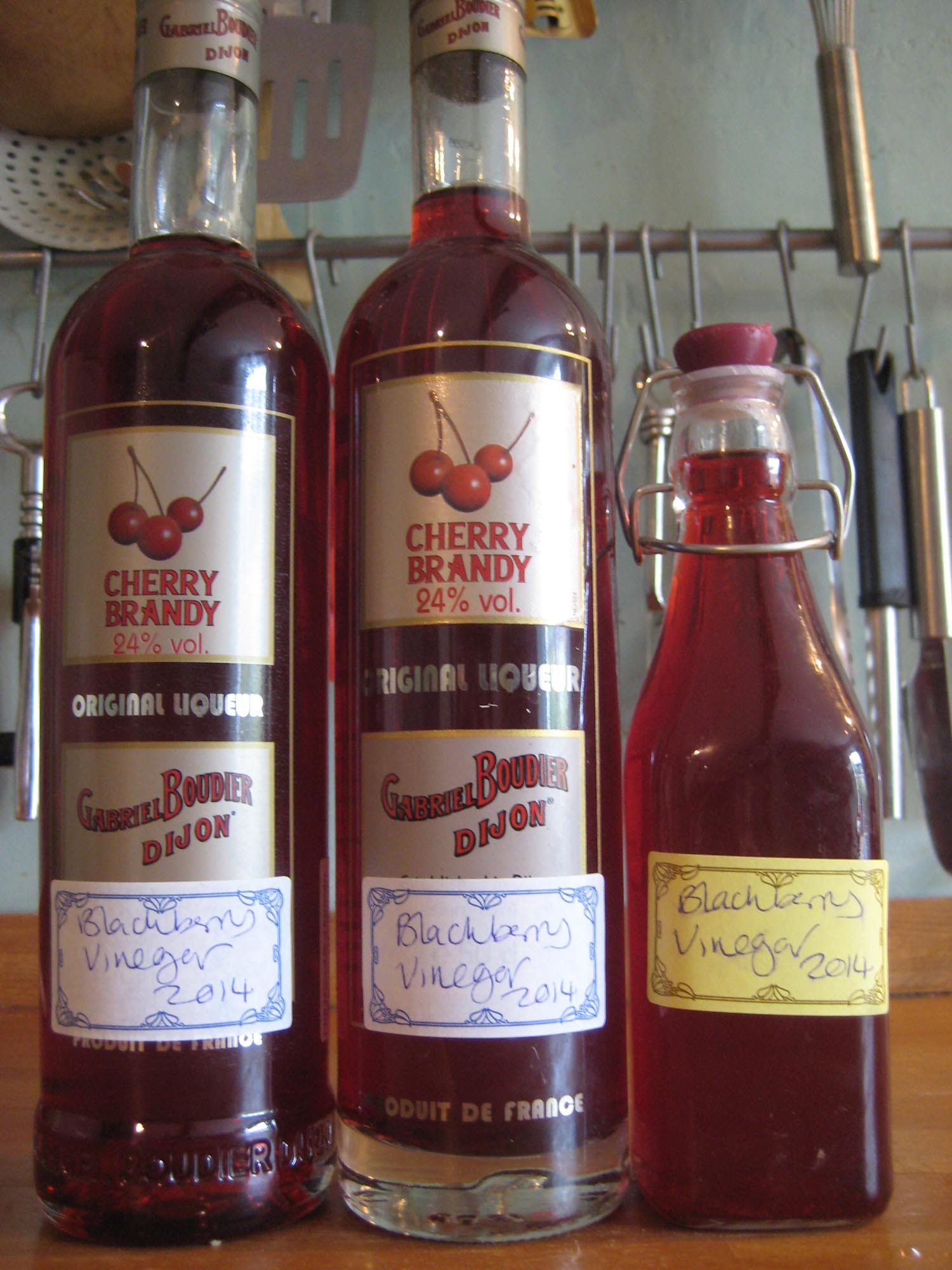 Converting cherry brandy bottles into vinegar containers