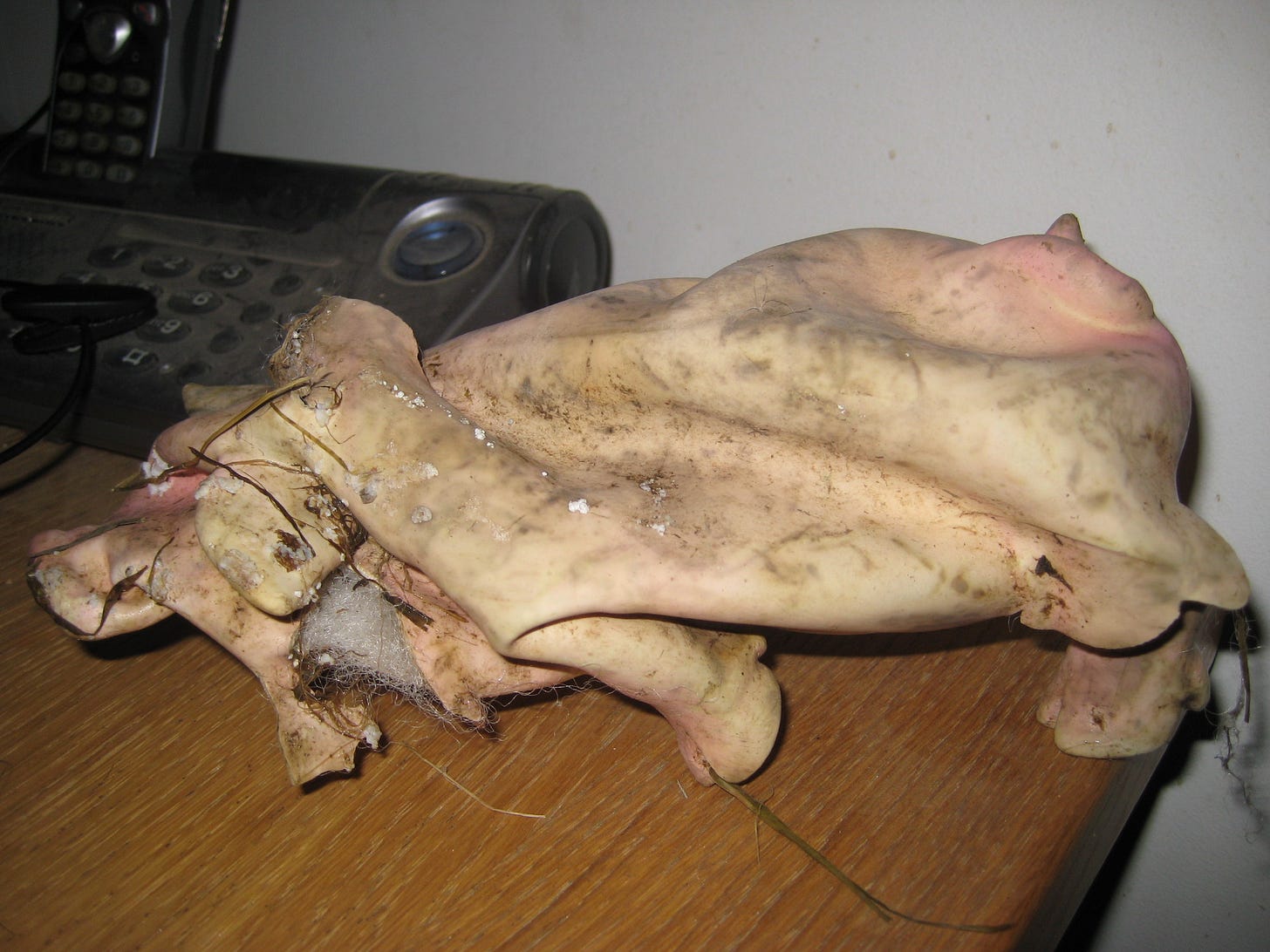 A dog chewtoy piglet found in a bale - disconcertingly lifelike in colour