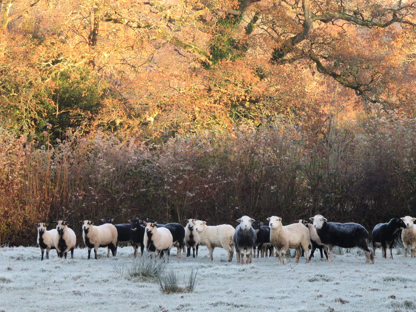 It makes me smile that just as much of nature becomes fully dressed, dandling blossom and fat leaves and seed heads, that the sheep are not far off being shorn and bare, and we the farmers join the posties in donning shorts and t-shirts, even when stout boots and wellies are still required. Our shedding is at the opposite season from the trees and when they start to drop their glories, we pull on thicker sweaters and waterproofs.