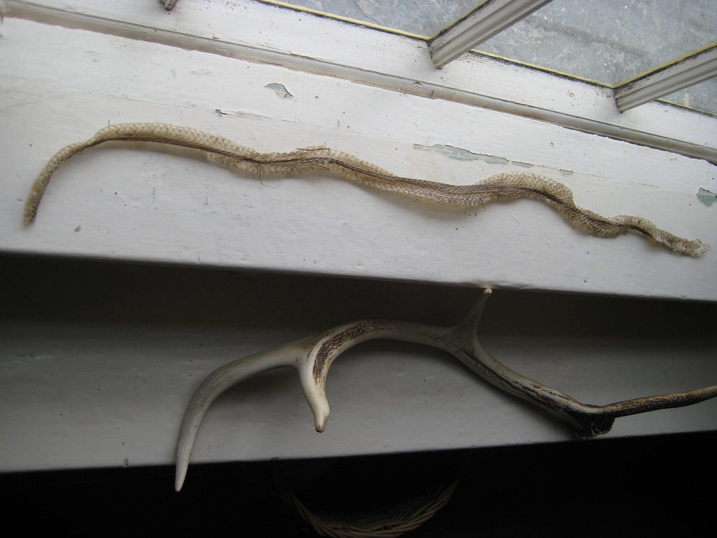 Years ago, twenty I think, I was tootling along the hedgeline of one of our fields, peering over the fence and getting acquainted with the various scrubby bushes, saplings, tuffets of grasses and twined dried tendrils of honeysuckle and ivy when I saw something unnaturally white and smooth in the undergrowth. I scrambled over the fence and gave it an experimental tug. It wasn’t a small piece of bone as I’d thought, it was a complete antler from a red deer stag. The fence post must have been a conveniently satisfying scratching post for an itchy head, as antler became detached at shedding time. I’ll never find another antler there, but I always look, just in case. I was doing that just the other day, and started to contemplate the whole concept of shedding. We certainly find the sloughed off skins of grass snakes here and there, particularly near the compost heaps. And my dog is on a permanent mission to litter as much of his fluff as possible in the house, particularly the moment the Henry has been stowed back under the stairs. And talking of vacuuming, I don’t want to google exactly how much skin a person sheds in the normal manner of things, because the idea of it is somewhat yuck.